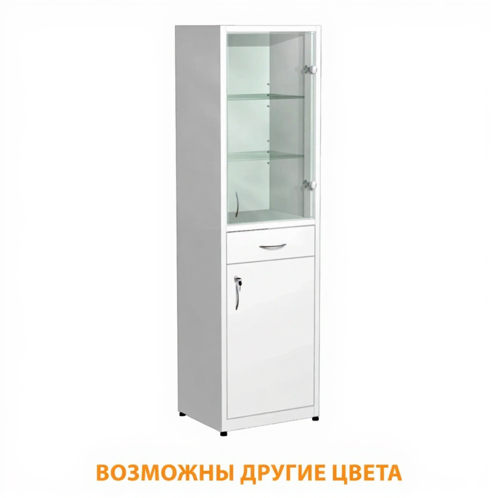 Шкаф металлический для медикаментов (стекло), с ящиком ШдМп-3 (белый) активно используются в больницах, лабораториях, аптеках, где необходимо хранение медикаментов, медицинского инвентаря, одежды работников, приборов, больничной документации.
