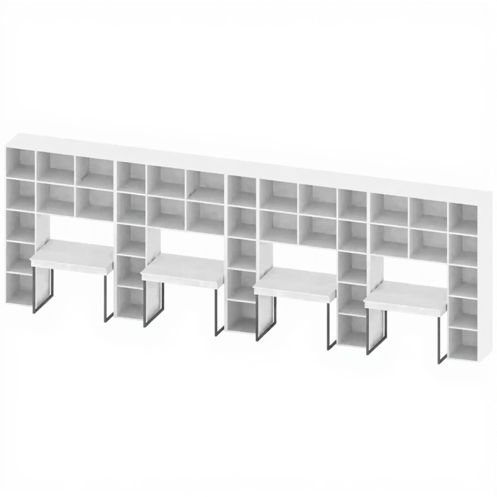 - Практичность и организация — идеальное решение для библиотек, учебных заведений или домашних кабинетов, где требуется создать множество индивидуальных рабочих мест с возможностью хранить литературу рядом.