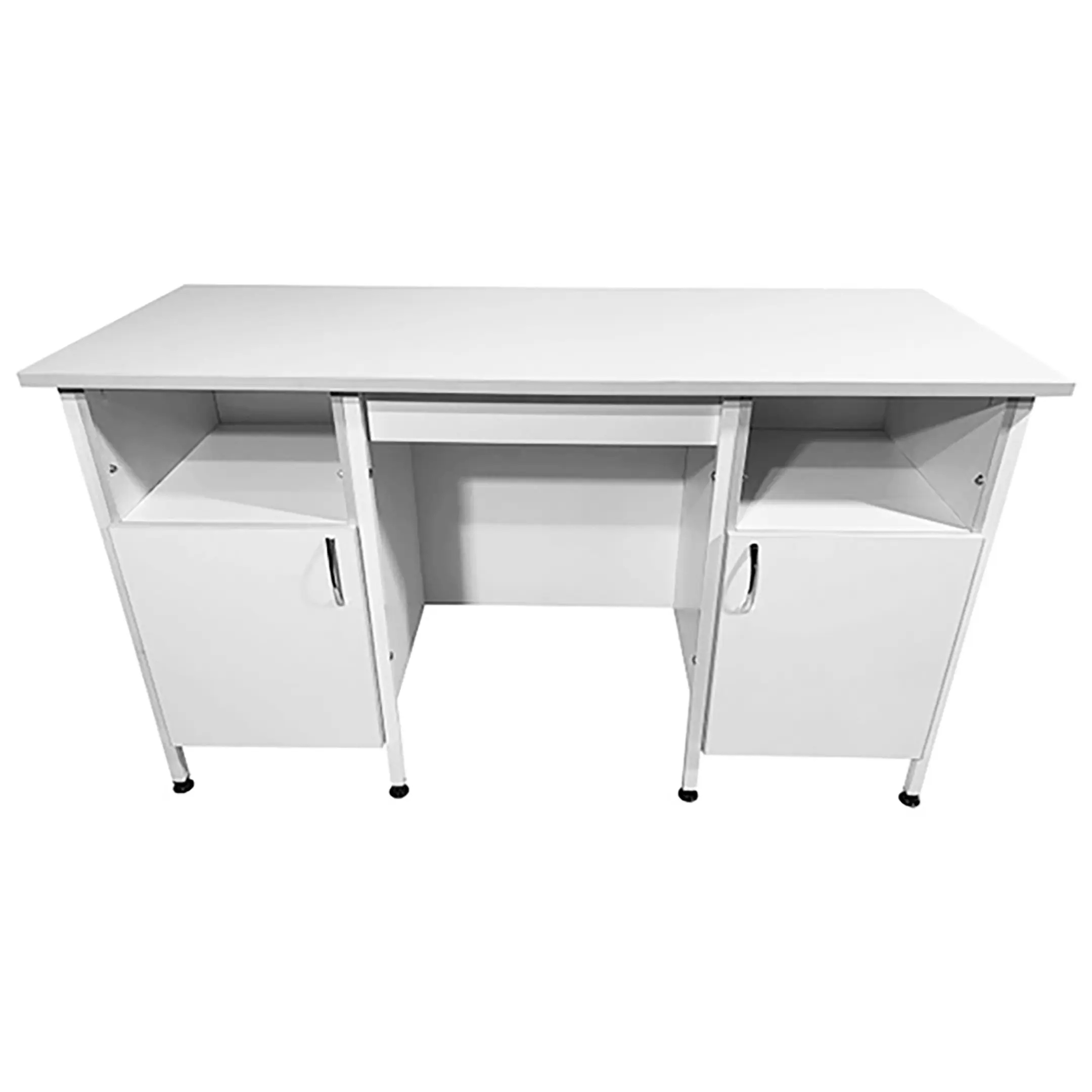 Стол лабораторный СЛ 12.019 (белый) — это идеальное решение для создания эффективного и удобного рабочего пространства сотрудников в лабораториях и медицинских учреждениях. Модель оснащена двумя тумбами с открытой верхней нишей и нижним отделом с дверцей. Каркас выполнен из стального профиля, столешница из ЛДСП толщиной 22 мм.