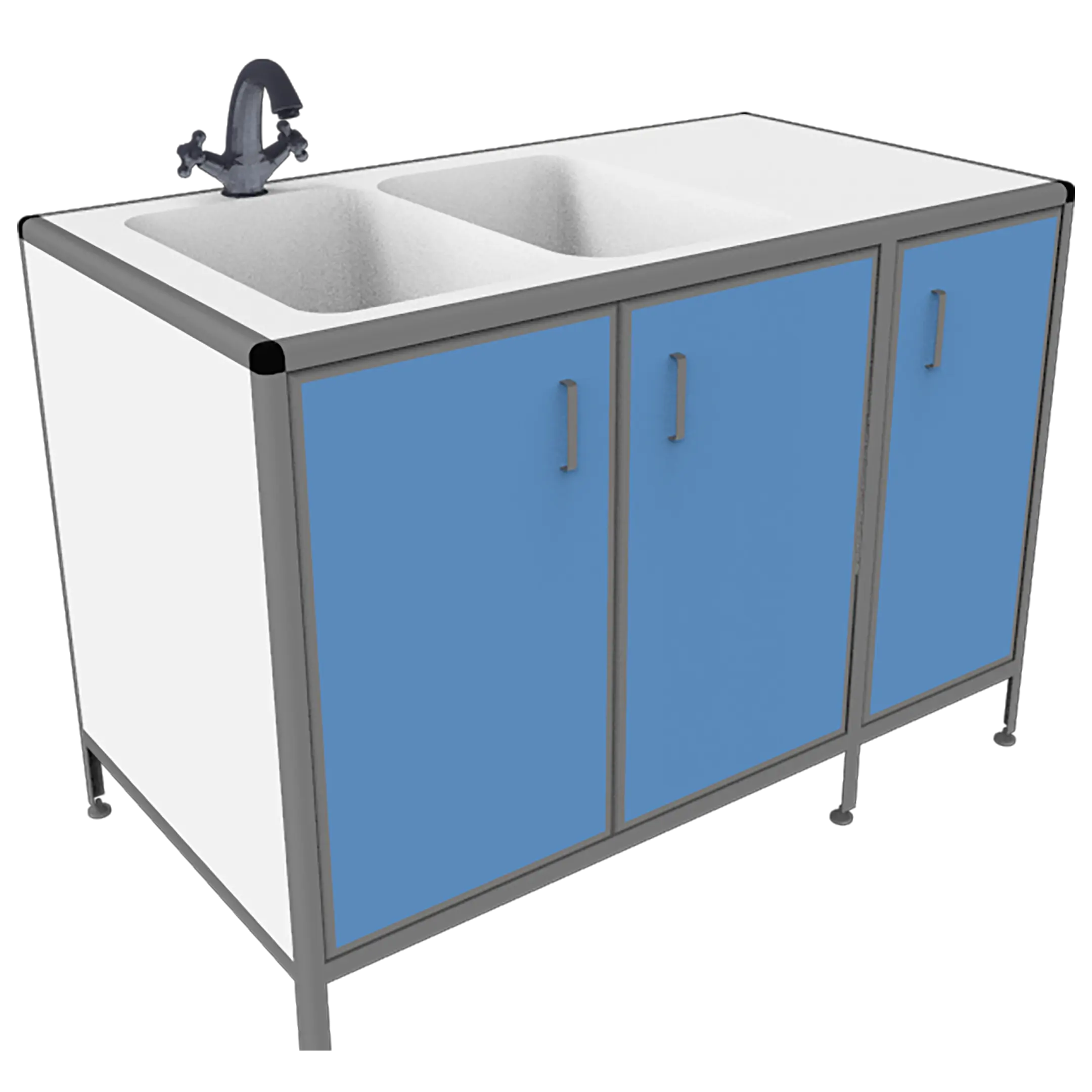 - Удобная система хранения — тумба под мойкой с тремя дверцами для хранения лабораторного инвентаря.