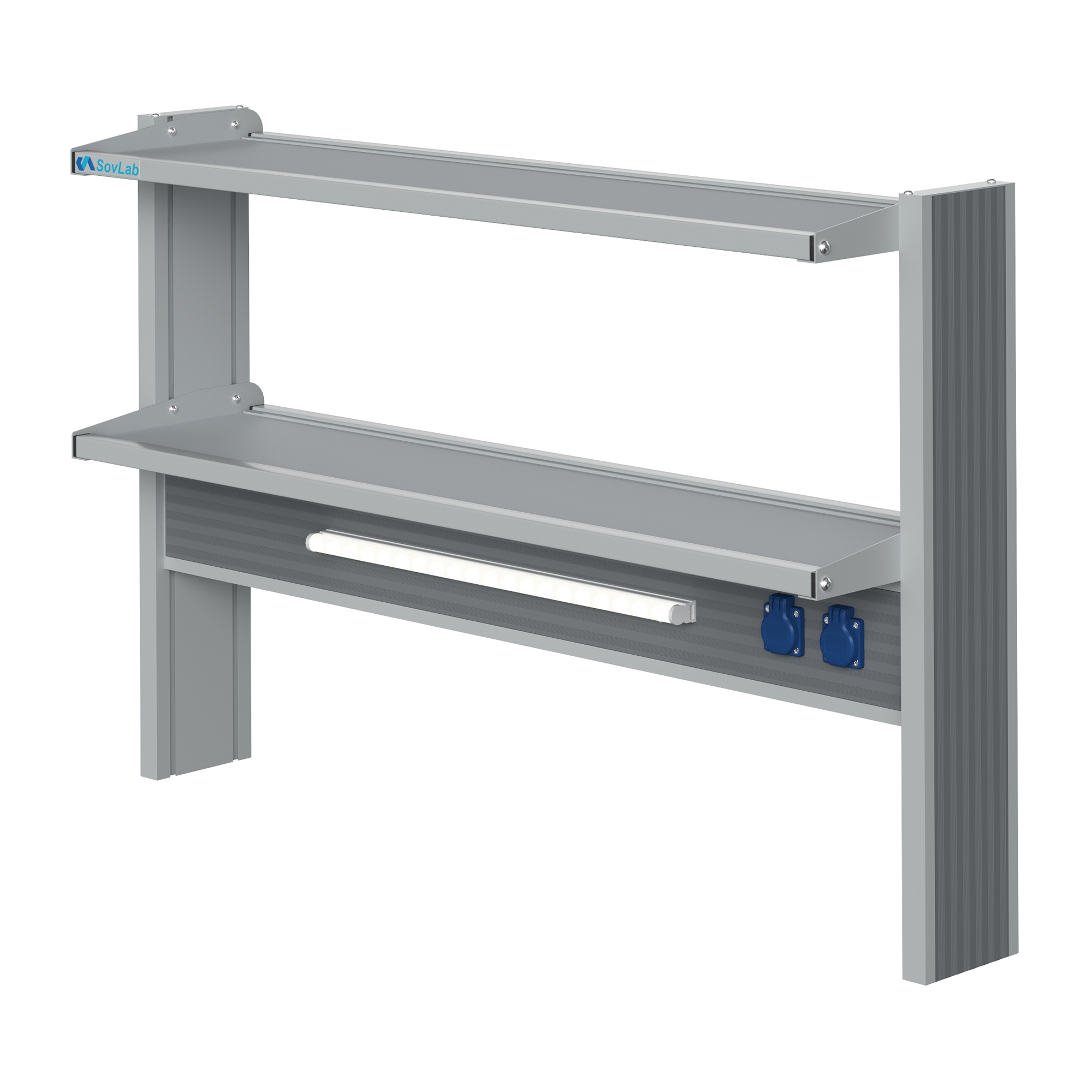 Технологический пристенный низкий стеллаж Mod. 1200 ТСПн — это специализированное лабораторное оборудование, устанавливаемое на рабочую поверхность пристенных лабораторных столов и предназначенное для размещения лабораторной посуды, расходных материалов, инструментов, приборов и другого лабораторного оборудования. Модель оснащена двумя полками, блоком брызгозащищенных розеток и светодиодным светильником для местного освещения рабочей зоны.