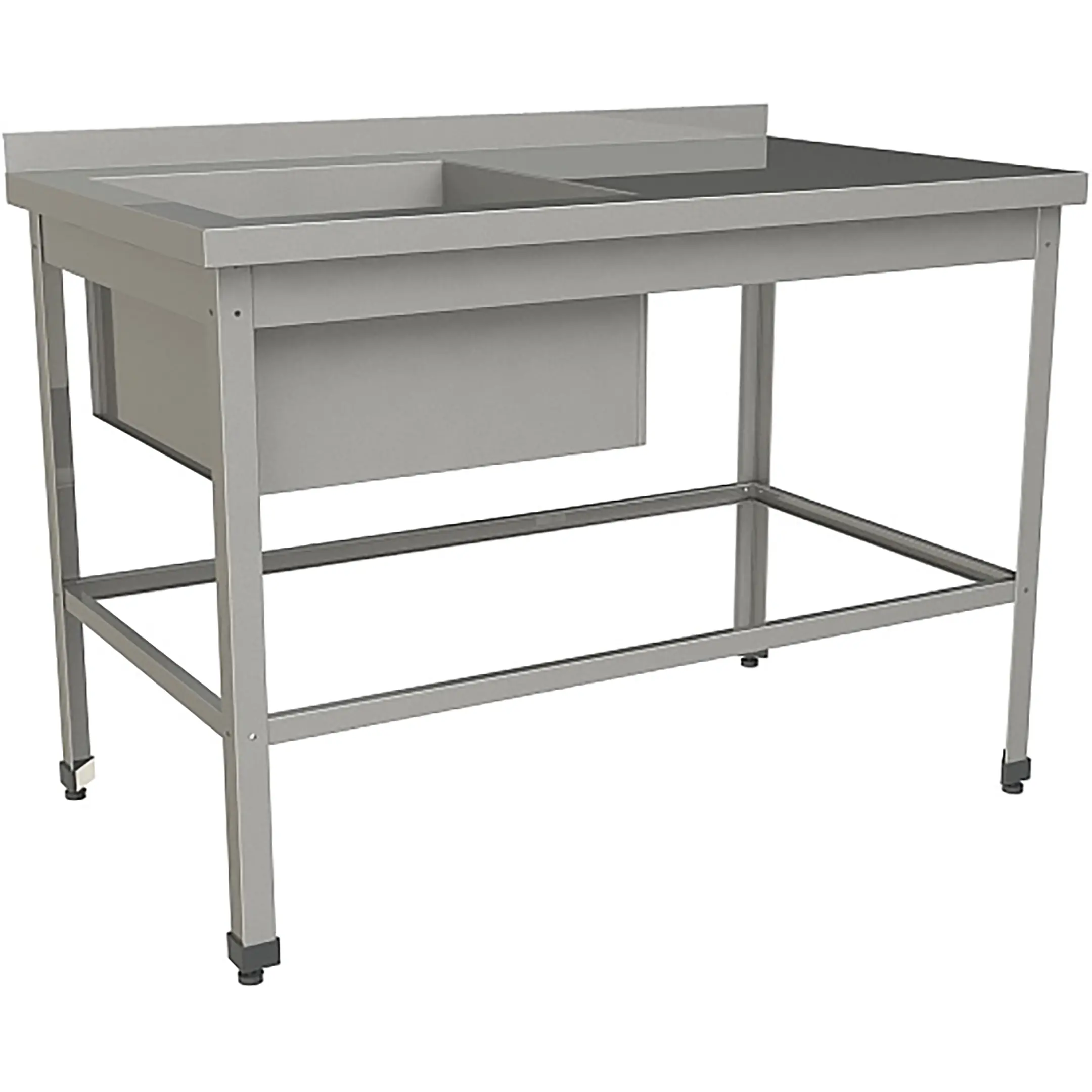 Ванна моечная сварная с рабочей поверхностью с бортом ВМСР/1-11/7-БЛО-ЭН разработана для применения в моечных отделениях предприятий общепита и торговли различного формата, пищевых производств и пищеблоков для мытья посуды, кухонного инвентаря, продуктов питания и рук персонала.