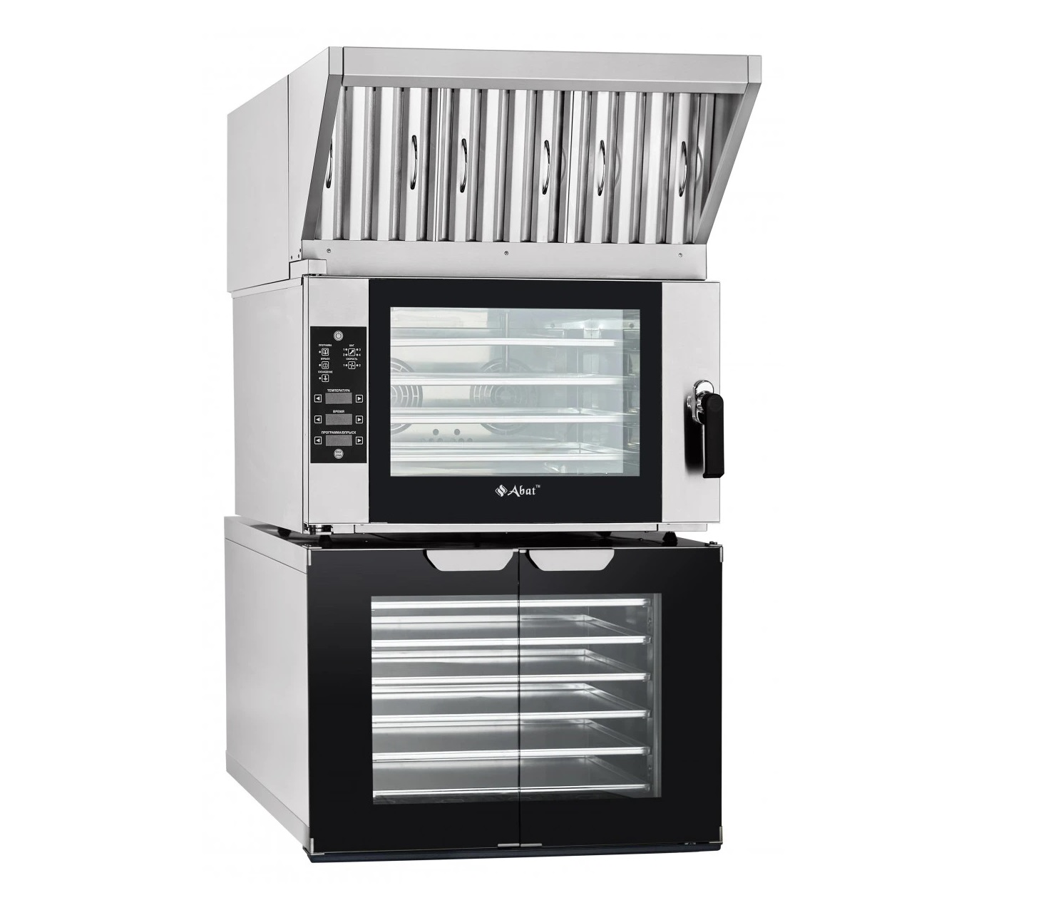 Зонт не занимает полезное кухонное пространство, так как устанавливается на крышу конвекционной печи. Зонт имеет обработанные края для безопасной работы персонала.