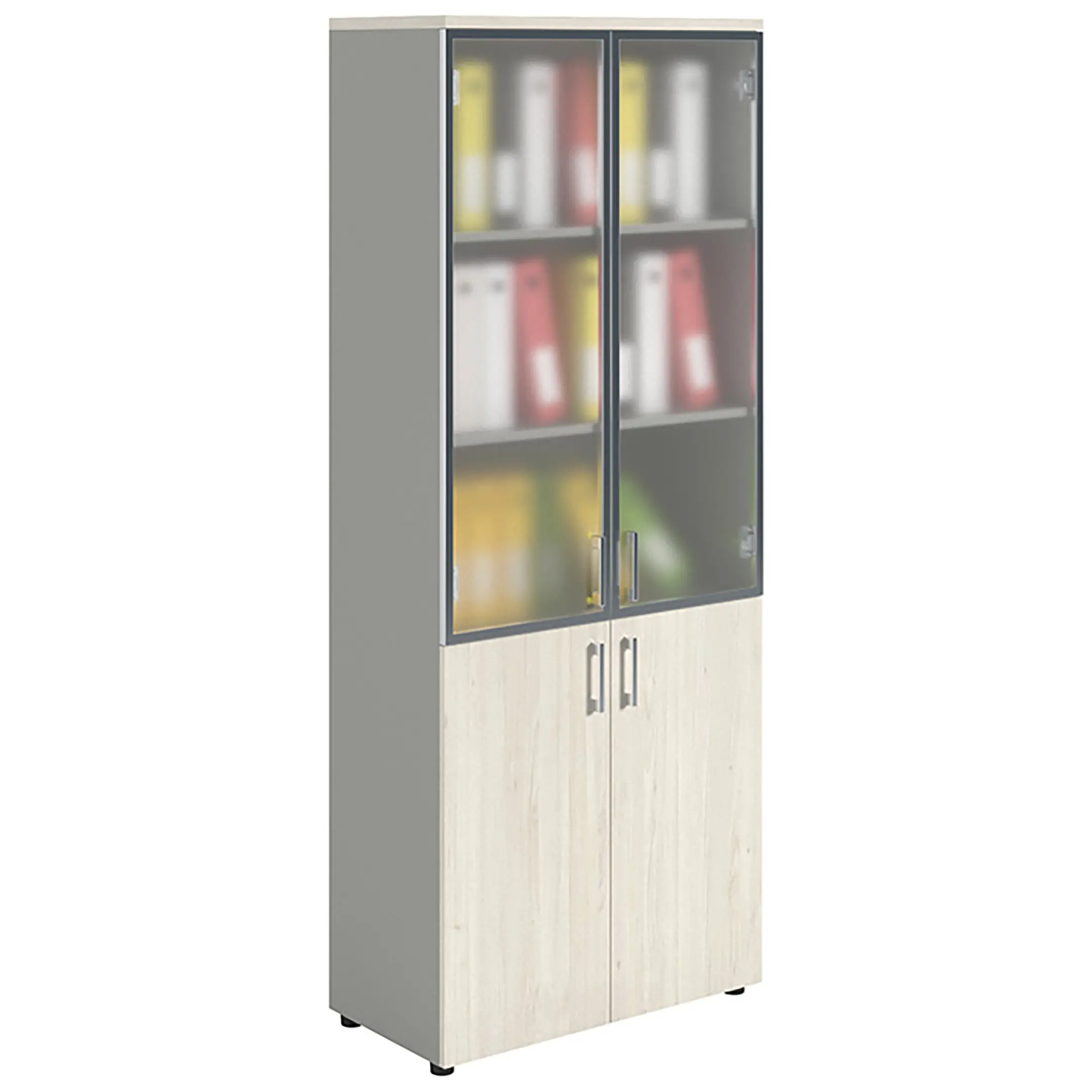 Шкаф NW 2080/2G со стеклом белое дерево/серый предназначен для хранения.