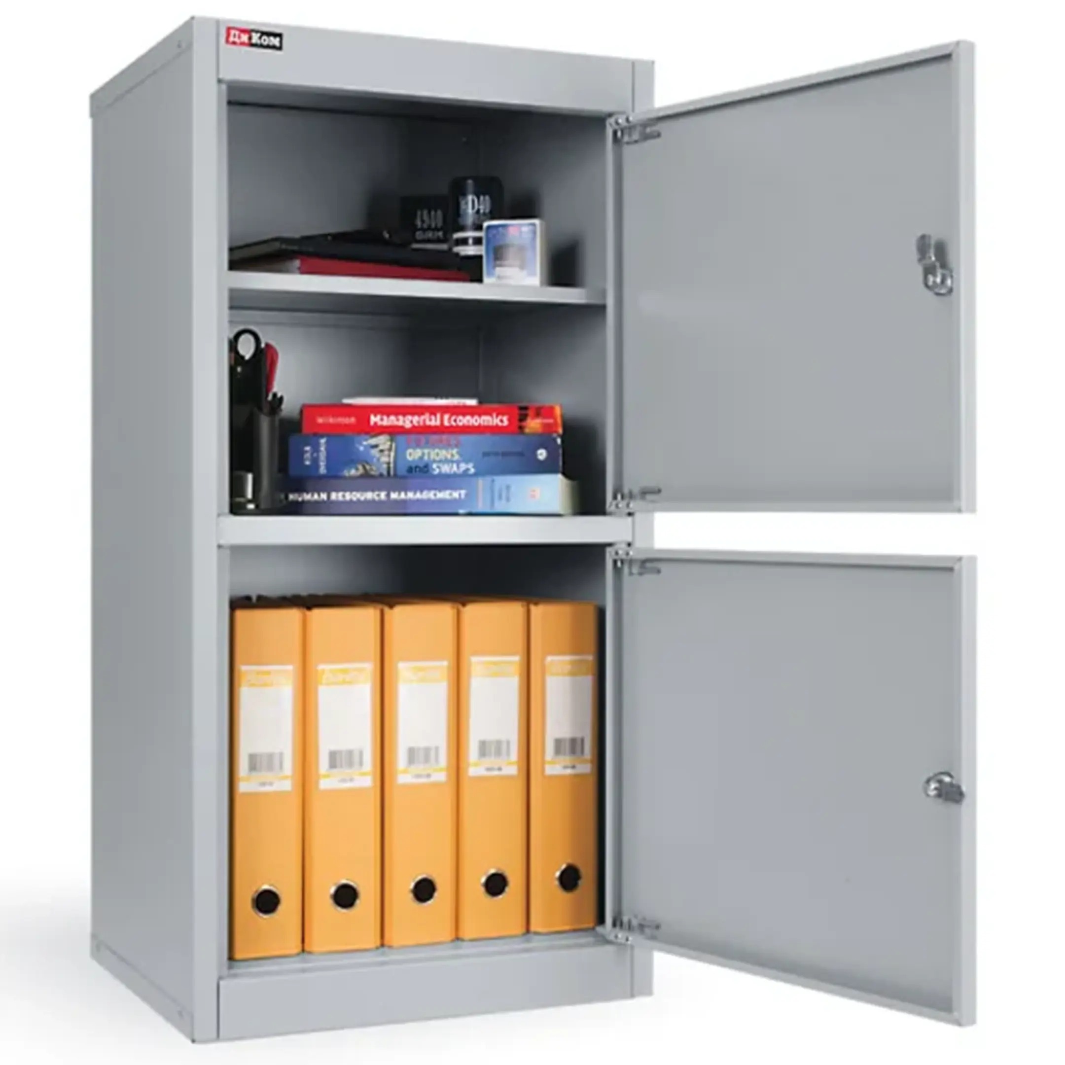 - Надежная и долговечная конструкция — шкаф изготовлен из прочной листовой стали с антикоррозийным порошковым покрытием, что обеспечивает устойчивость к механическим нагрузкам, деформациям и гарантирует длительный срок службы даже в условиях интенсивной эксплуатации. Распашная дверца оснащена надежным встроенным замком с ключом.