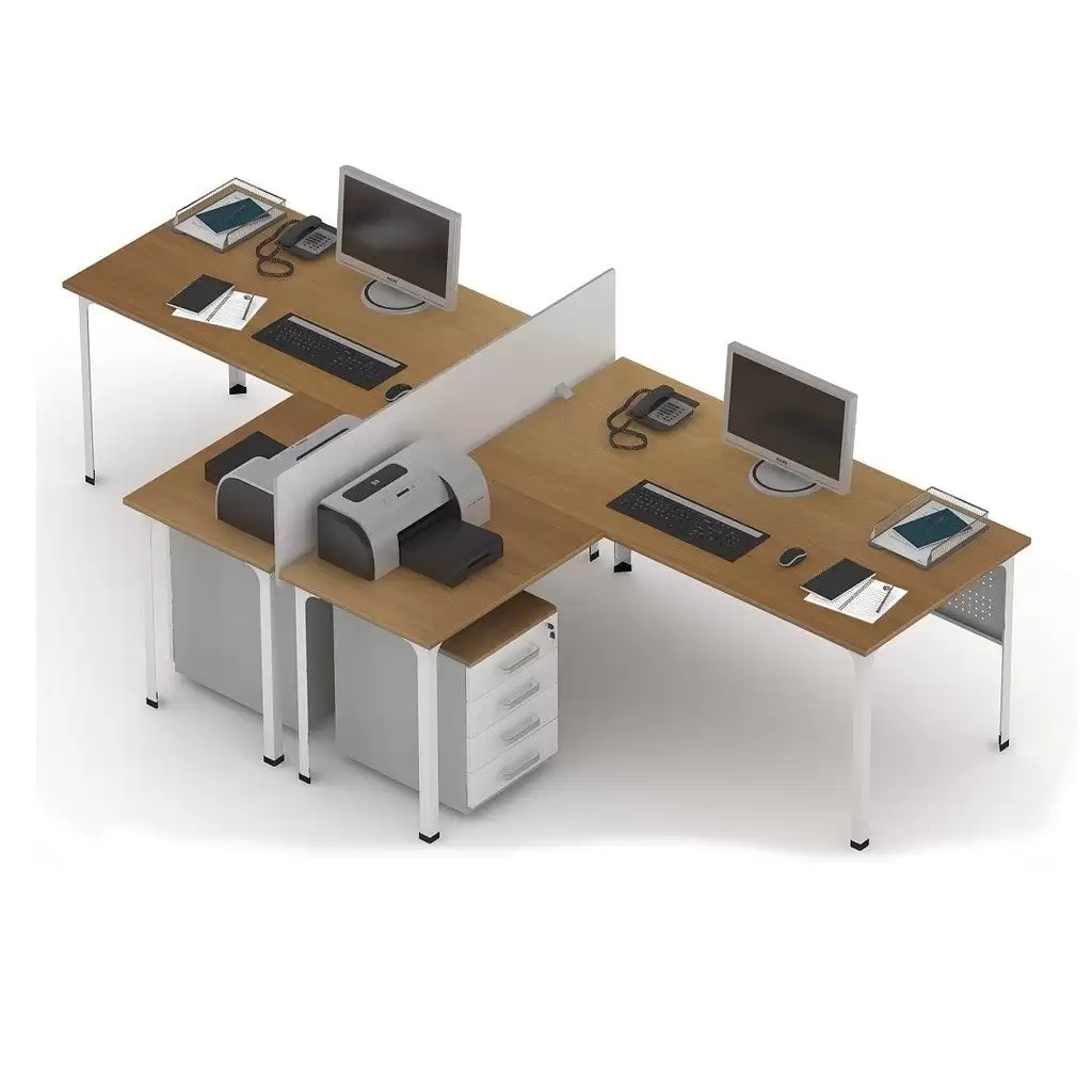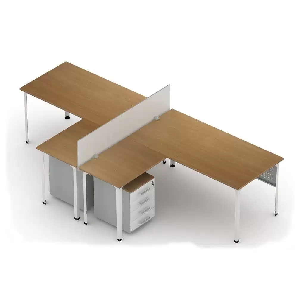 • формируется из 2 столов офисных, 2 столов-приставок, 2 экранов и перегородки;