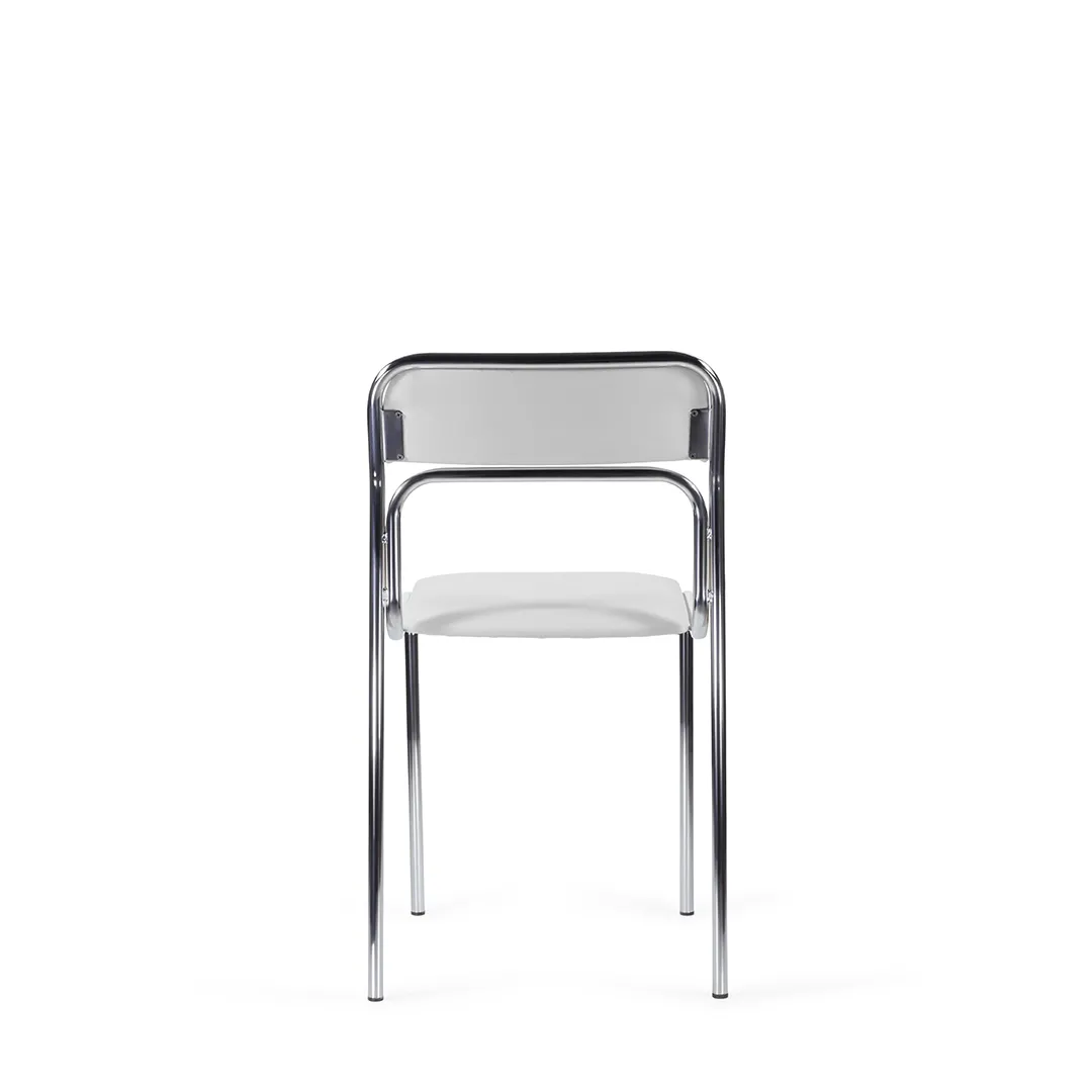 - Легкий вес и возможность штабелирования — стул имеет небольшой вес, что облегчает его переноску, а также может складироваться в стопки, экономя место при хранении или уборке помещения.