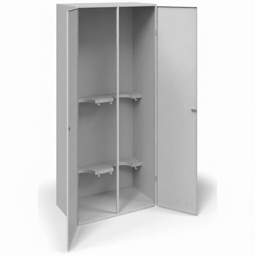 - Оптимальная вместимость для ответственных участков — шкаф рассчитан на хранение двух газовых баллонов, что является базовой потребностью для множества операций: газовая сварка и резка (баллон с горючим газом + кислород), работы с газовым инструментом или хранение резервных емкостей. Он обеспечивает парное размещение, занимая при этом минимум полезной площади, и идеально подходит для участков, где важна повышенная надежность и устойчивость конструкции.