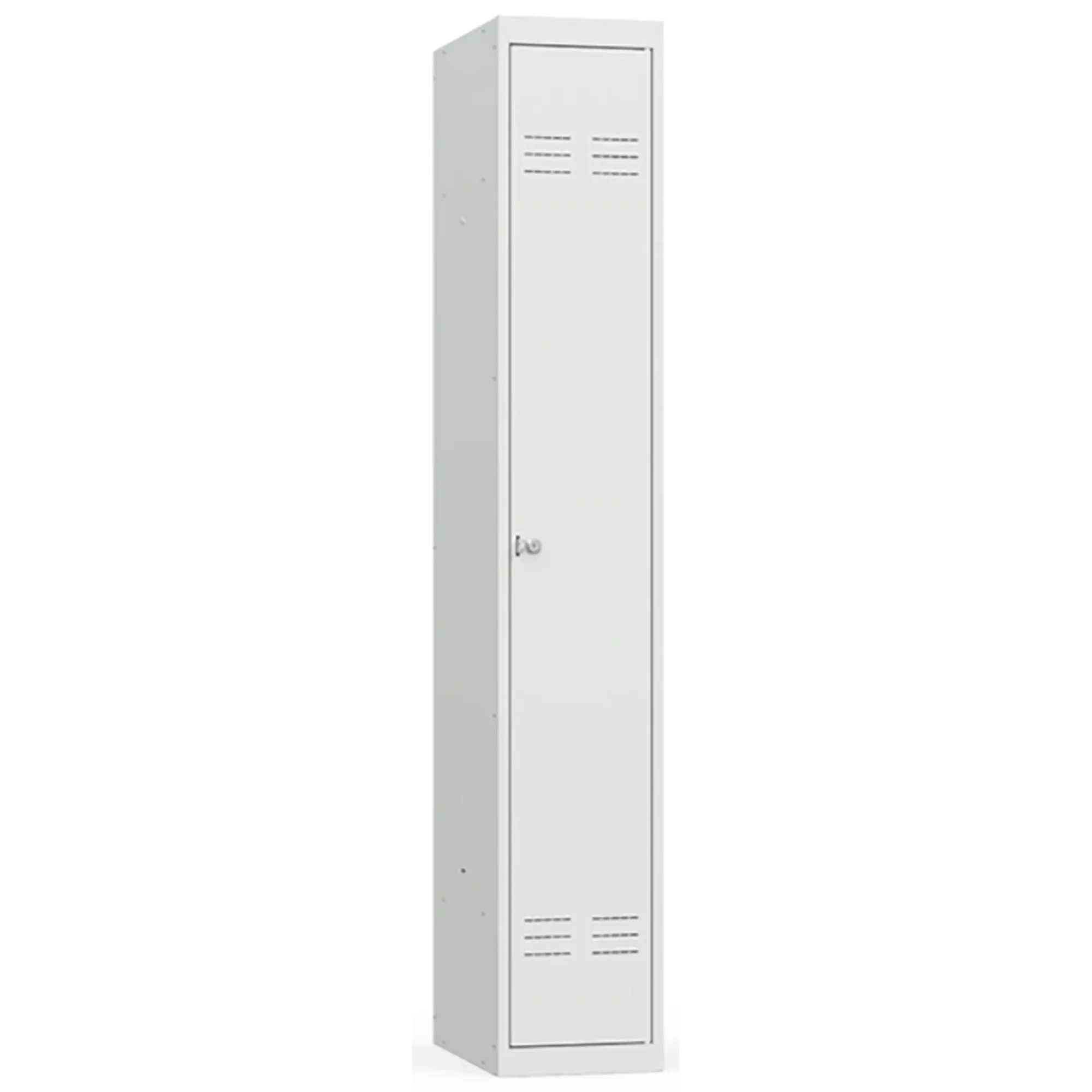 • Односекционный металлический шкаф для одежды имеет полную внутреннюю комплектацию: полку для головных уборов, пластиковые перекладины для вешалок и два крючка для одежды, проушина для навесных замков;